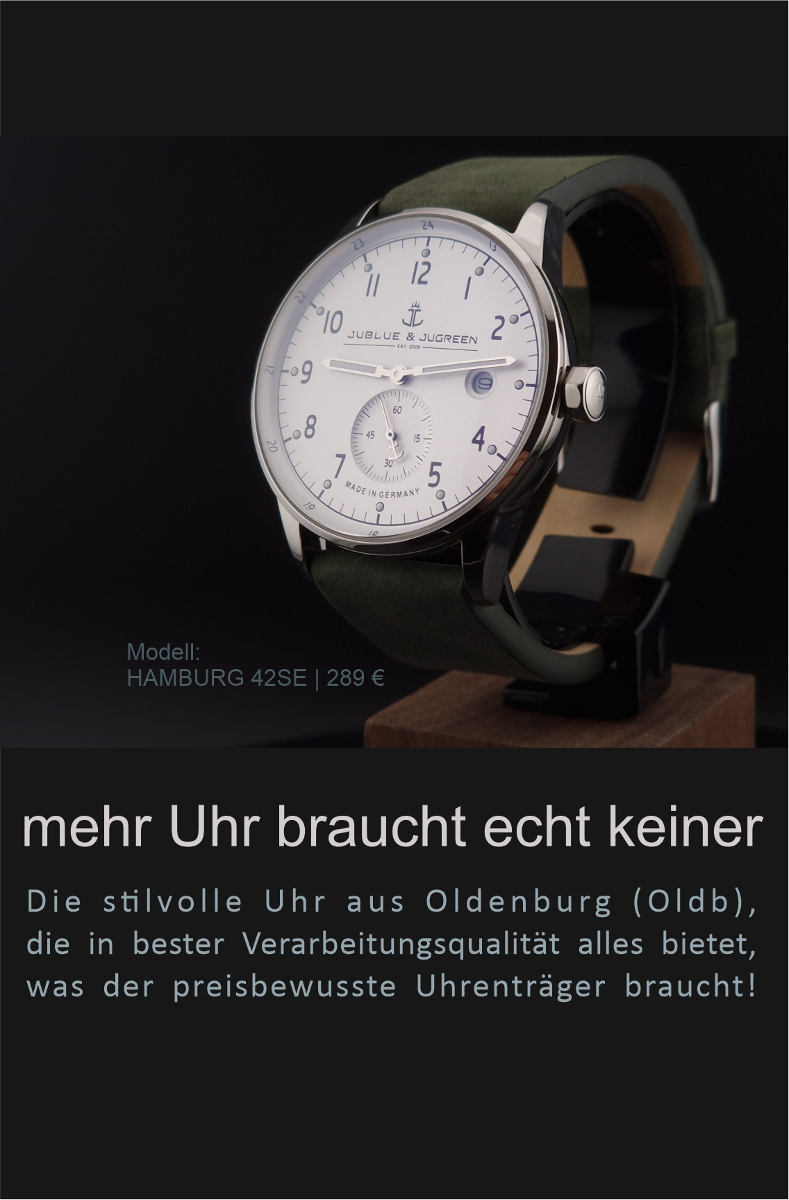 Die stilvolle Uhr aus Oldenburg (Oldb), die in bester Verarbeitungsqualität alles bietet, was der preisbewusste Uhrenträger braucht!